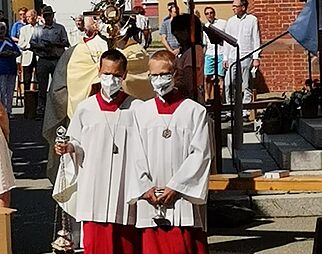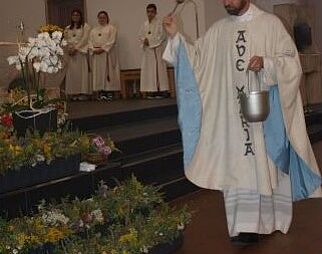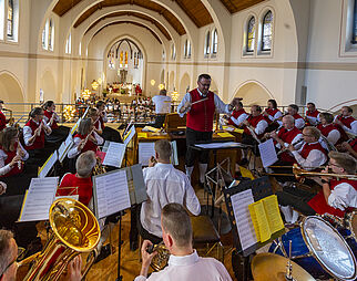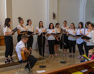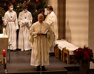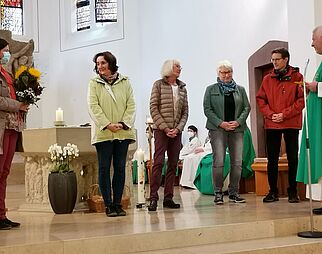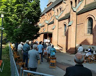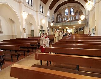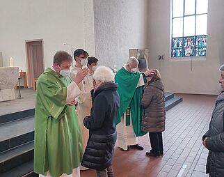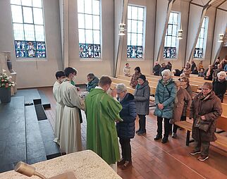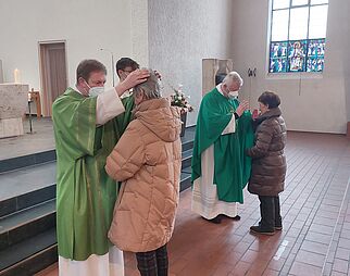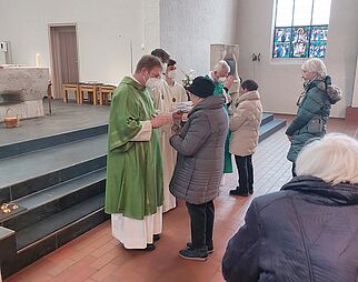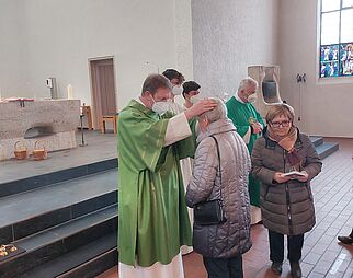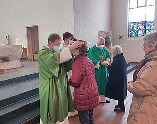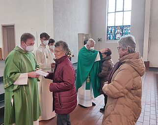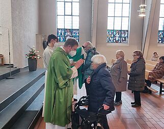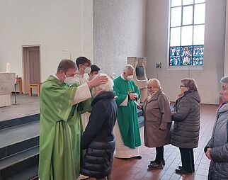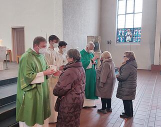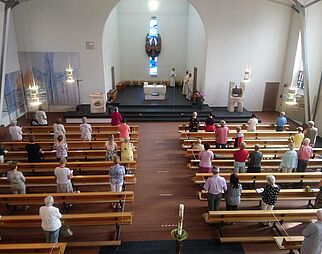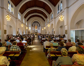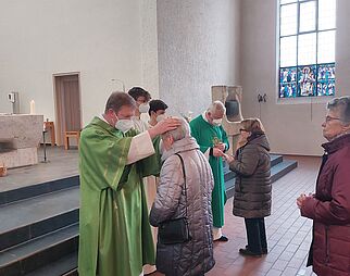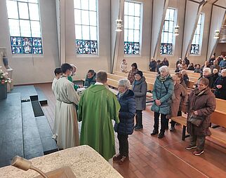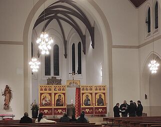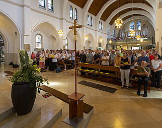 Gläubige beim Gebet in der Kirche Mariä Himmelfahrt
