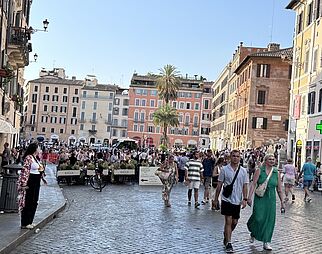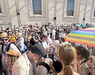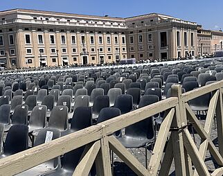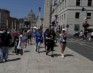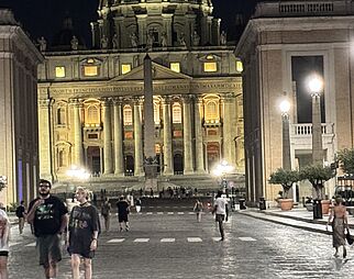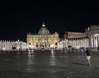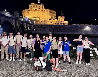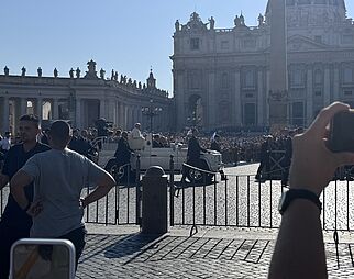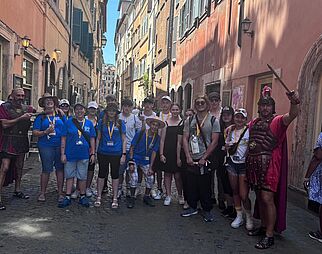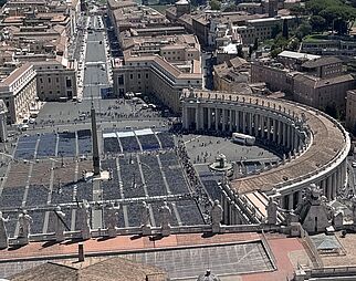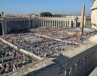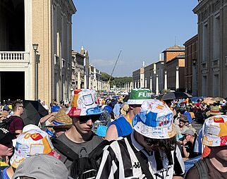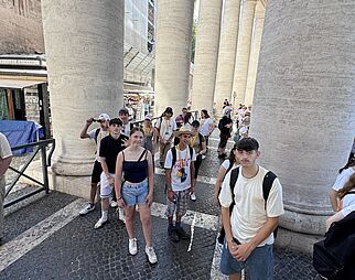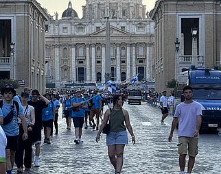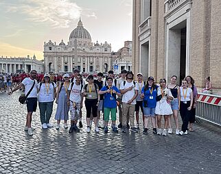 Dicht an dicht drängen sich eines sonnigen Sommernachmittags über 50.000 Ministrantinnen und Ministranten auf dem Petersplatz in Rom. Das kann nur Eines heißen: Es ist wieder so weit, es ist die Zeit der internationalen Ministrantenwallfahrt nach Rom. Seit 1962 fahren alle vier bis fünf Jahre junge Menschen aus ganz Europa für eine Woche nach Rom, um dort gemeinsam Glauben zu erleben und für sich zu beleben. Es ist eine Woche der Begegnungen und des Entdeckens. Dieses Jahr war es wieder so weit, auch wenn es wegen Corona ein bißchen länger gedauert hat als gewöhnlich, und auch die Ministrantinnen und Ministranten der Seelsorgeeinheit Neckar-Baar waren mit von der Partie. Mit vierzehn Teilnehmern und drei Begleitpersonen waren sie zwar eher eine kleine Truppe, aber dennoch mit Herz und Seele dabei.